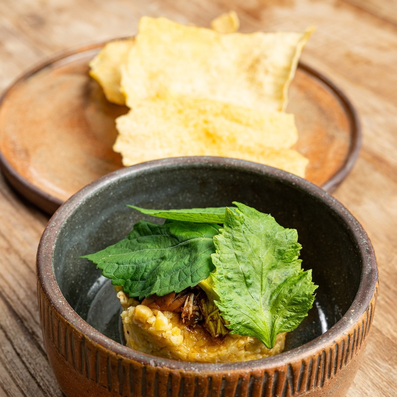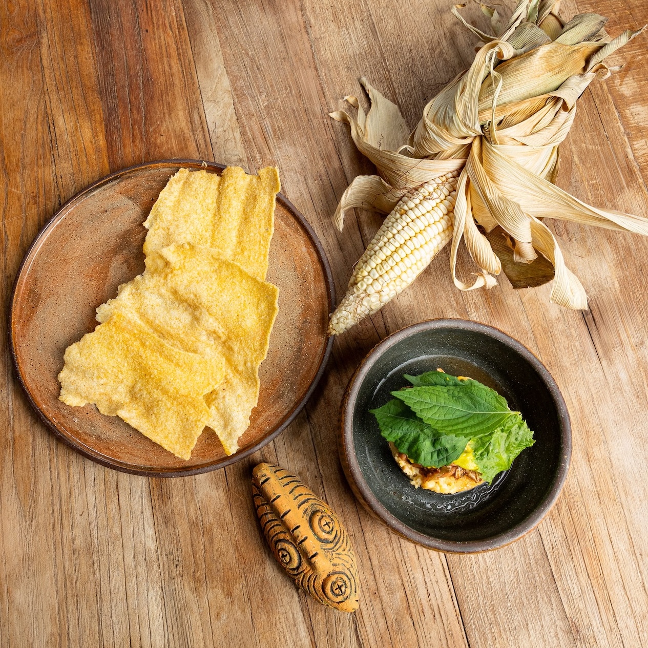 Tortilla criolla · hummus de maíz · hierbas del Cupey